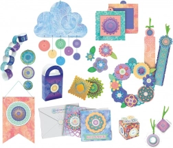 Da un unico set potrai creare biglietti, segnalibri, ghirlande, mini cornici o etichette regalo – tutti con i tipici motivi Spirograph.
