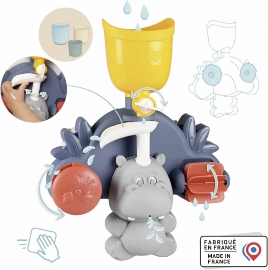 Il giocattolo da bagno Little Smoby Ippopotamo trasforma ogni bagnetto in un momento di allegria. Versa l’acqua nell’imbuto, sposta lo scivolo a destra, a sinistra o al centro e, girando il rubinetto, si attiva un flusso che sgorga dalla bocca dell’ippopotamo mettendo in moto le rotelle colorate. Gli effetti d’acqua interattivi motivano anche i bambini che tendono a evitare l’acqua.