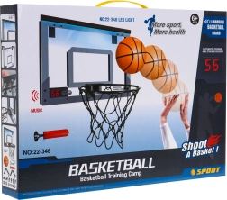 Il set include un tabellone con canestro, contatore digitale ed effetti luminosi. Le dimensioni compatte garantiscono facile stoccaggio e trasporto. Il gioco favorisce il movimento sano e lo sviluppo delle capacità di coordinazione.