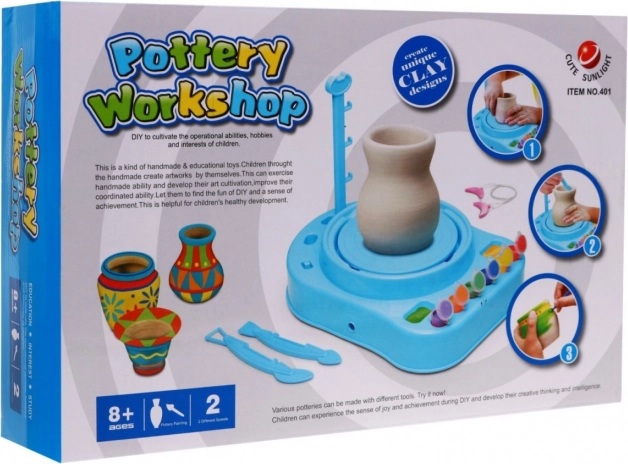 | Il set del piccolo vasaio è un giocattolo educativo per realizzare e dipingere recipienti in ceramica. I bambini possono creare i propri vasi, tazze o brocche e poi decorarli con colori a loro piacimento. Il tornio in ceramica gira a due velocità, lenta e veloce. Il giocattolo stimola la fantasia e sviluppa abilità manuali, destrezza e capacità artistiche. Adatto a bambini dagli 8 anni in su e dotato di certificazione CE. Il giocattolo è alimentato da batterie tipo 3 x R14 (non incluse). | |
