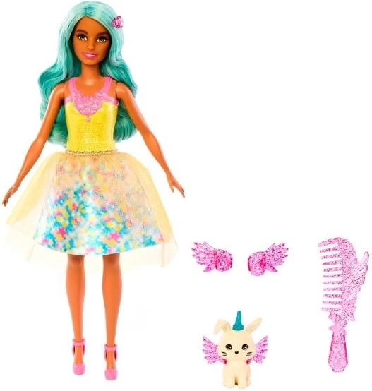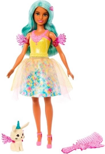 Scopri il mondo di BARBIE A Touch of Magic con la bambola Teresa, che incanta con un outfit scintillante, accessori fantastici e la possibilità di giocare con le acconciature. Inclusi un tenero animaletto con alucce e un pettine per pettinare i capelli turchesi. Ideale per storie creative e divertimento magico.