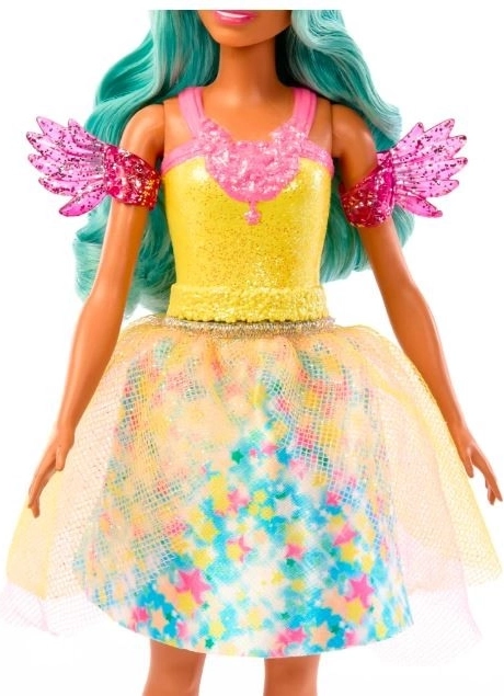 La bambola Teresa della linea Barbie A Touch of Magic porta ai bambini un gioco incantato pieno di colori, brillantini e fantasia. Ha capelli turchesi facilmente pettinabili con il pettine incluso e indossa un outfit luminoso con stampa e uno strato leggermente trasparente. I polsini scintillanti con alucce donano un tocco da fatina e ne esaltano lo stile magico.