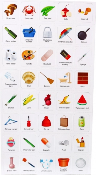 Il set comprende una guida illustrata su cartoncini che spiega come differenziare correttamente: verde – rifiuti organici da cucina, blu – rifiuti riciclabili, grigio – rifiuti indifferenziati, rosso – rifiuti pericolosi. Così i bambini acquisiscono naturalmente abitudini ecologiche e senso di responsabilità verso l’ambiente.