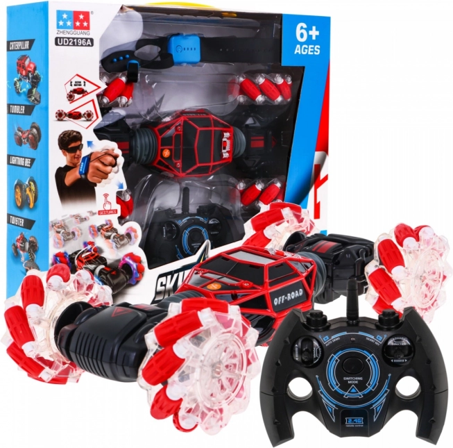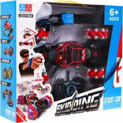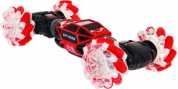 | | Veicolo in scala 1:16 con controllo a distanza o manuale, destinato a bambini dai 6 anni in su. Il veicolo cingolato può viaggiare in posizione orizzontale o ripiegata (si solleva), avanti e indietro e lateralmente. Tutte le manovre possono essere eseguite sia con il telecomando sia con il controller a gesti. Le grandi ruote illuminate offrono un effetto sorprendente durante la guida notturna. Possiamo guidare con o senza musica di sottofondo. In modalità demo il veicolo mostra le sue capacità. Tempo di ricarica circa 3 ore, autonomia di guida 10 minuti. Il veicolo è alimentato da una batteria ricaricabile da 7,4 V (inclusa), il telecomando da 2 batterie AA 1,5 V (non incluse), il controller si ricarica tramite cavo USB. |