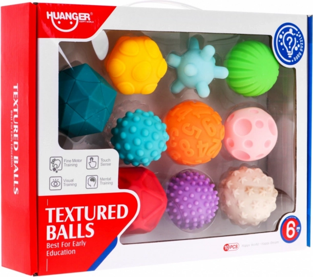 Ogni pallina ha una superficie diversa – rilievi, scanalature o puntini – per sensazioni tattili intense e una migliore presa.