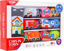 9 pz (camion, furgoncino del gelato, scuolabus, autopompa, ambulanza, taxi, betoniera, camion delle ciambelle, auto della polizia)