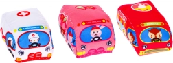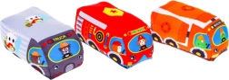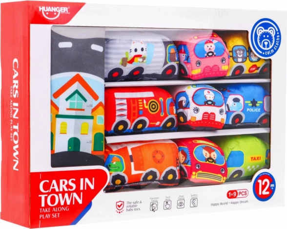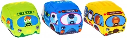Macchinine tessili colorate con simpatici conducenti: leggere, soffici e ideali per le manine dei bambini. Favoriscono un gioco divertente e sicuro senza spigoli duri.