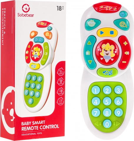 Telecomando interattivo e multifunzione con effetti sonori e luminosi per bambini dai 18 mesi. Il giocattolo è realizzato in plastica della massima qualità e non presenta spigoli vivi. Dispone di grandi pulsanti per attivare gli effetti sonori e luminosi, in modo che possa essere facilmente utilizzato dalle piccole manine dei bambini. Sotto ogni pulsante ci sono melodie e suoni divertenti; è presente anche un pulsante per avviare e fermare il giocattolo e un pulsante per il controllo del volume. Al centro del telecomando c’è un grande pulsante con il disegno di un orsetto che lampeggia durante la riproduzione della musica. Il pulsante nella parte superiore del telecomando con la scritta TV è anch’esso retroilluminato. Il giocattolo è alimentato da 3 batterie AAA da 1,5 V; le batterie non sono incluse. .Specifiche del giocattolo: .- colori fiabeschi, .- set di melodie integrate, .- altri suoni: battito cardiaco, versi di animali, numeri da 0 a 9 in inglese, .- LED lampeggiante sul pulsante con il disegno dell’orsetto, .- illuminazione del pulsante TV alla pressione di qualsiasi tasto, .- grande tastiera con pulsanti contrassegnati da numeri, .- controllo del volume. |