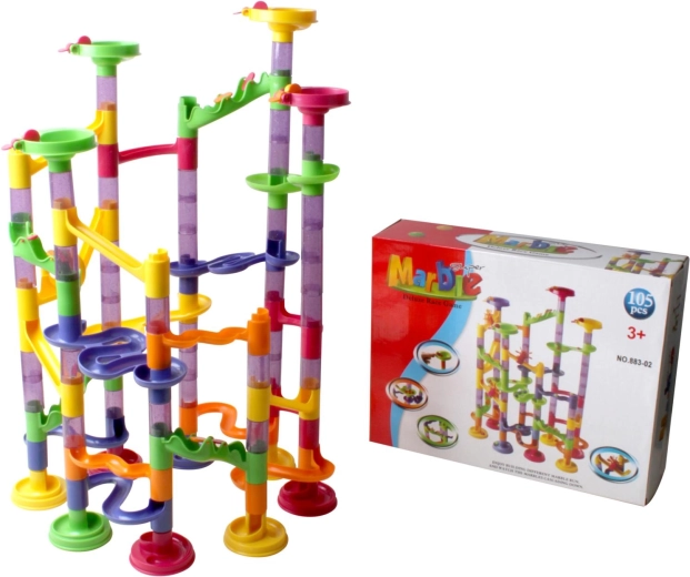 Pista per biglie colorata e resistente per bambini dai 3 anni, che sviluppa creatività e abilità manuali. È ideale per costruzioni individuali e per osservare il movimento delle biglie.