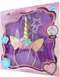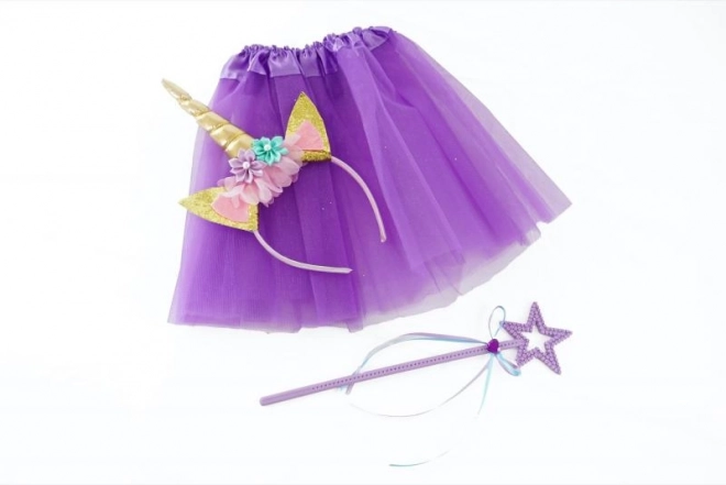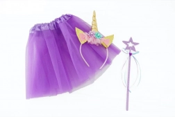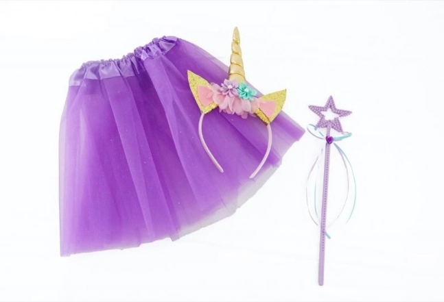 Dai libero sfogo alla fantasia con il magico set unicorno: include una gonnellina tutù viola, un cerchietto con corno scintillante e una bacchetta stellata. Ideale per carnevale, feste e il gioco di tutti i giorni, per bambini dai 3 anni.