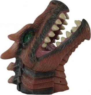 Scaglie dettagliate, denti evidenti e occhi penetranti danno al burattino un aspetto autentico che coinvolge subito i bambini nel gioco.