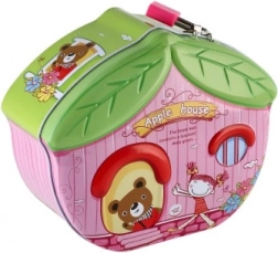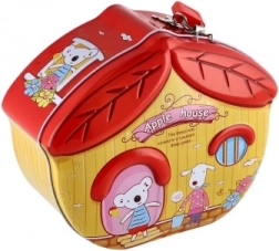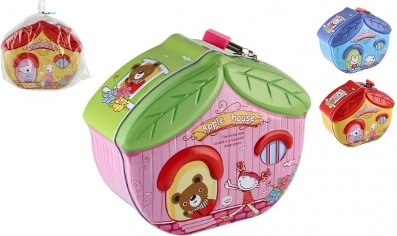 Adorabile salvadanaio in latta a forma di casetta con tema “Apple house”, aiuta i bambini a imparare a gestire il denaro e a contare. Dispone di lucchetto sicuro con chiavetta, comoda fessura per le monete e robusta struttura in metallo in diversi colori vivaci che i bambini adoreranno.