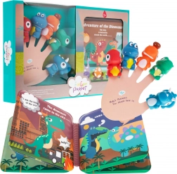 5 burattini da dito in gomma (dinosauri), libricino morbido