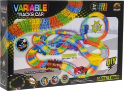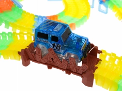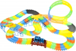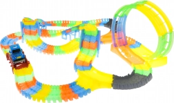 La pista luminosa al buio con loop e macchinina inclusa è adatta ai bambini dai 3 anni in su. Le piste sono flessibili: possono essere disposte in qualsiasi combinazione, ruotate, sollevate e riorganizzate anche mentre la macchinina è in corsa. Inoltre sono fluorescenti e brillano al buio. Il veicolo incluso nel set ha un’illuminazione LED; la guida al buio crea un effetto straordinario. Il veicolo è alimentato da 2 batterie AA 1,5 V, non incluse. Per avviare l’auto basta premere il pulsante sul tetto. La lunghezza totale della pista è di 446 cm. . |