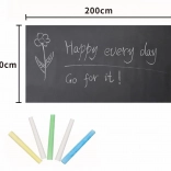 La lavagna adesiva nera crea immediatamente una superficie di scrittura utilizzabile su superfici lisce come armadi, porte, pareti o mobili. Grazie alle dimensioni di 200 × 60 cm offre spazio a sufficienza per i disegni dei bambini, i messaggi di famiglia e gli appunti di lavoro. La superficie è pensata per gessetti classici ed è facile da pulire.
