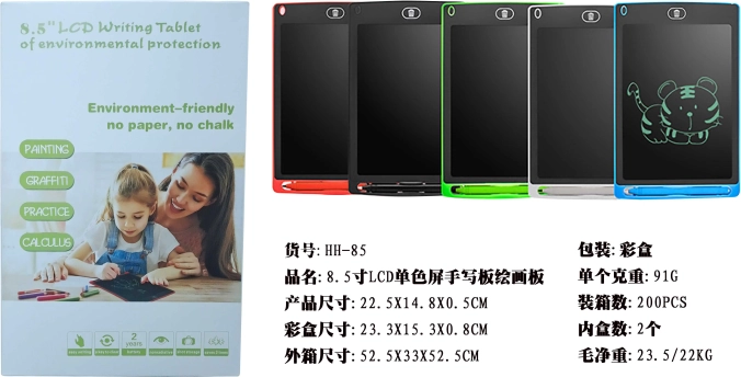 Leggera e ultra sottile, la tavoletta elettronica da 8,5" è ideale per bambini dai 3 anni e per adulti. Offre una superficie riutilizzabile per scrittura e disegno, cancellazione immediata con un solo pulsante, blocco antieliminazione e display LCD sicuro senza emissioni nocive. Inclusi stilo e foro per laccio per un facile trasporto.