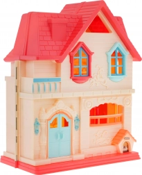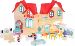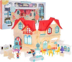 Incluso un ricco set di accessori: mobili per soggiorno, camera da letto e cucina, decorazioni, auto con ruote mobili e tre personaggi (mamma, papà, bambino). Grazie alla facile apertura e alle porte apribili, il gioco è ordinato e confortevole.