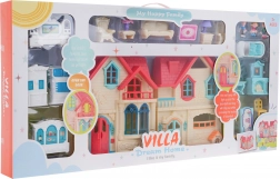 Villa pieghevole, mobili e accessori, auto con ruote, 3 personaggi, adesivi decorativi, batterie 3 × AG13