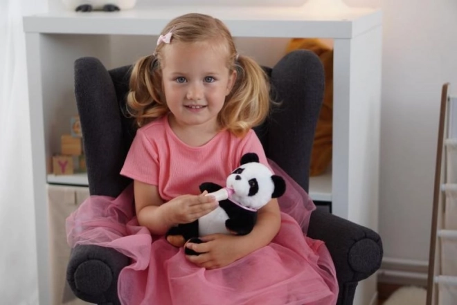 Questa panda morbidissima è la compagna ideale per coccole e gioco. Grazie alla semplice interazione con il biberon, i bambini possono sperimentare la cura e sviluppare empatia e motricità fine. La panda ha una superficie in peluche soffice e sta seduta comodamente, perfetta sia per la cameretta che per i viaggi.