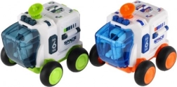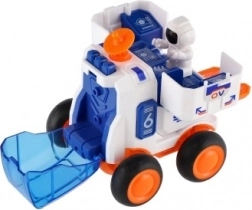 La cabina con figurina di astronauta è apribile, permettendo di animare il gioco e l'interazione con la macchinina.