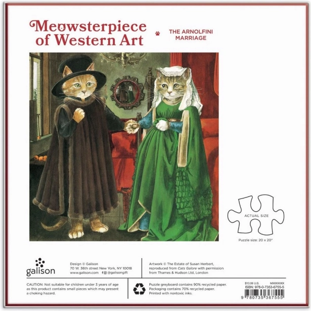 Goditi un divertente momento di relax con l’originale soggetto dell’artista felina Susan Herbert – una parodia dell’iconica opera di Van Eyck. Questo puzzle quadrato di alta qualità da 500 pezzi del brand Galison entusiasmerà gli amanti dell’arte e dei gatti e offre un formato di circa 51 × 51 cm per un assemblaggio confortevole. Una scelta perfetta per rilassarsi e un regalo ideale per chi apprezza umorismo, eleganza e lavorazione precisa.