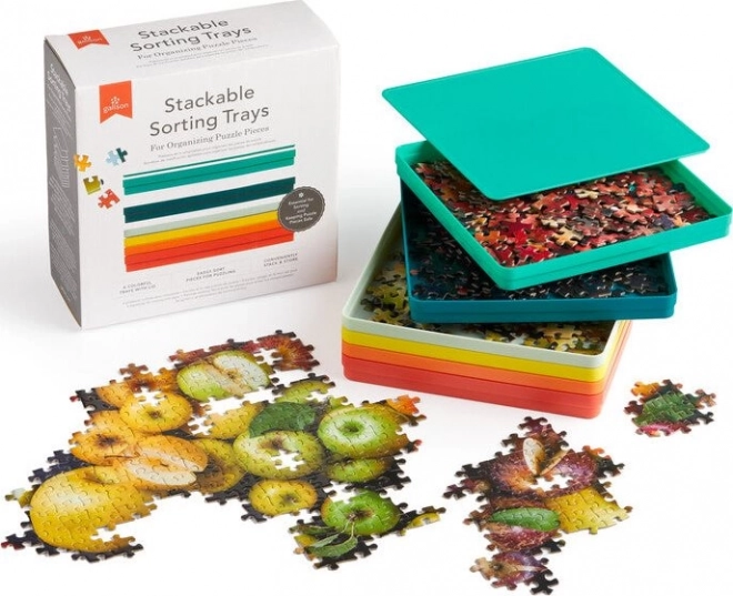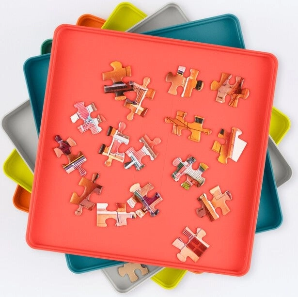 Goditi il puzzle con uno spazio di lavoro perfettamente organizzato. Sei ciotole colorate permettono di dividere rapidamente i pezzi per forma, colore o bordi. Le ciotole si possono facilmente impilare, coprire con il coperchio superiore e riporre in sicurezza insieme ai pezzi, così non si rovescia nulla e si risparmia spazio.