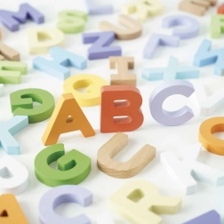 Un set vario di lettere in colori vivaci che favorisce l'apprendimento dell'alfabeto, l'arricchimento del vocabolario e la motricità fine.