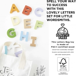 Questo set educativo di qualità porta ai bambini la gioia di scoprire le lettere e comporre parole semplici. Le robuste lettere in legno dai colori vivaci invogliano a giocare, ordinare e creare, mentre la borsa di tela permette di riporre facilmente tutti i pezzi dopo il gioco.