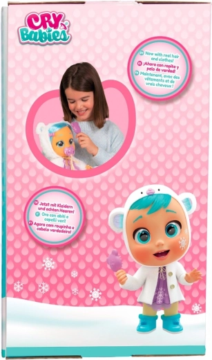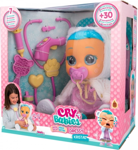 La bambola Cry Babies Kristal è ora disponibile con un abito elegante che garantisce nuove esperienze di gioco. Reagisce a cure e coccole, imitando un vero bebè.