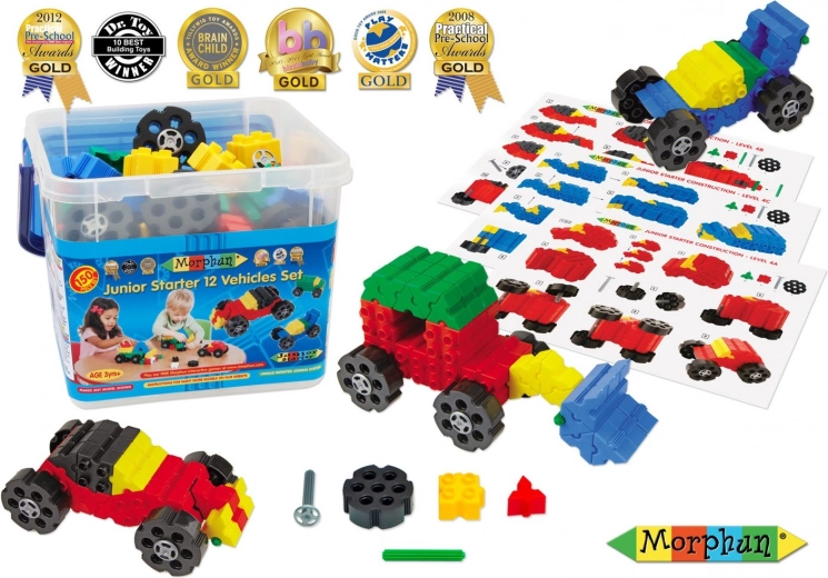 Con questo set Morphun, i bambini possono sviluppare le loro abilità motorie fini e la creatività. Con 150 pezzi in più colori, comprese ruote e assi mobili, è facile costruire qualsiasi cosa, da una macchina da corsa a un camion dei pompieri. I singoli modelli sono descritti in dettaglio nelle istruzioni a colori, che facilitano l'assemblaggio.