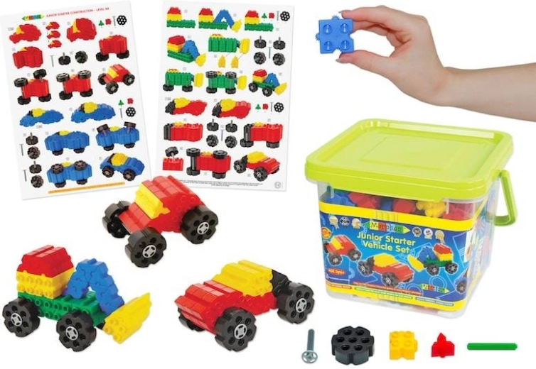 In base alle istruzioni incluse, è possibile costruire 4 veicoli diversi con ruote mobili, garantendo un divertimento dinamico. Il vostro piccolo costruttore inoltre si divertirà con giochi di ruolo grazie alla durabilità dei modelli e alla loro resistenza durante il gioco quotidiano.