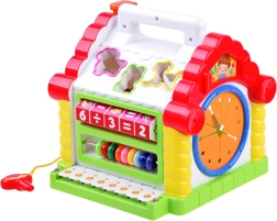 Scopri la magia della casa interattiva che combina divertimento e apprendimento. Questa giocosa casa aiuterà il tuo bambino a sviluppare abilità motorie fini e competenze matematiche di base grazie a varie attività, come l'assemblaggio di forme e il gioco del pianoforte.