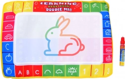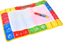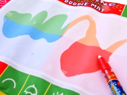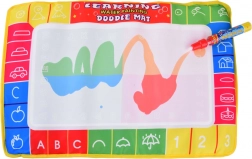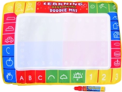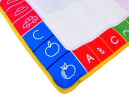 Il bordo del tappetino è decorato con lettere, numeri e semplici immagini che suggeriscono ai bambini come disegnare facilmente una macchinina, una mela, un coniglietto, una casetta e altre forme. Favorisce la concentrazione, la motricità fine e l'apprendimento naturale attraverso il gioco.