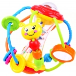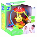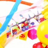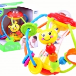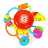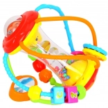 Questa sfera interattiva è stata progettata appositamente per i neonati che scoprono il mondo. All’interno si trova una spirale rotante con palline colorate, che crea un delicato tintinnio ed effetti visivi. Sono inclusi anche elementi mobili a forma di palline e quadratini con lettere e numeri, uno specchietto e dischetti piatti in vari colori per un’esplorazione divertente.