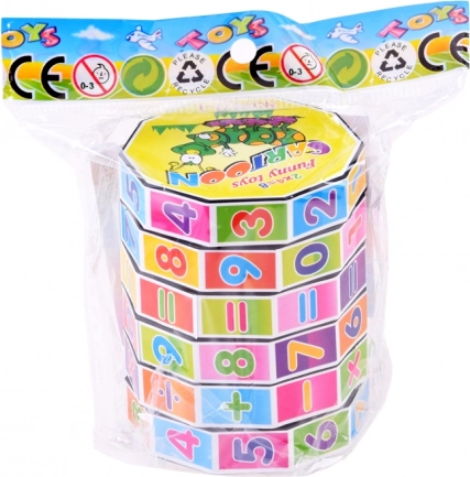 Giocattolo educativo colorato a forma di cilindro con anelli girevoli che aiuta i bambini a esercitare addizione, sottrazione, moltiplicazione e divisione. Uno strumento compatto e divertente che sviluppa il pensiero logico, la motricità fine e favorisce l'apprendimento attraverso il gioco.