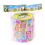 Grazie alle dimensioni compatte di 7 × 5,5 × 5,5 cm, il cilindro si impugna comodamente dalle mani piccole ed è ideale in viaggio e a scuola. I colori vivaci mantengono alta l'attenzione e motivano all'esplorazione autonoma.