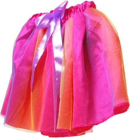 Disponibile in due combinazioni accattivanti: rosa con effetto ombre9 e fiocco viola oppure giallo con fodera bianca e pois gialli, completato da fiocco rosa. Perfetta per foto, feste e travestimenti quotidiani: la gonna stimola fantasia ed espressione di ogni piccola fashionista.