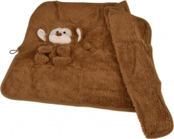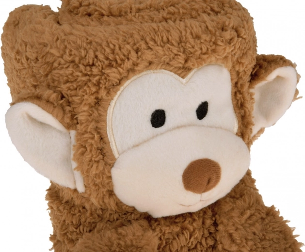 Apri, chiudi la zip e arrotola – ed ecco una tenera scimmietta. Il bambino può godersi il comfort della copertina e il divertimento del peluche, ovunque e in qualsiasi momento.