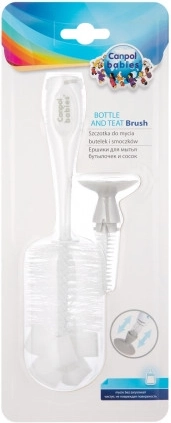 Spazzola dalla forma speciale con spazzolino nel manico, destinata alla pulizia di biberon e tettarelle prima della loro sterilizzazione. La ventosa consente di posizionare stabilmente o appendere la spazzola con spazzolino. Pratica ventosa - permette un appoggio stabile della spazzola su una superficie piana. Piccolo spazzolino con ventosa, nascosto nel manico - pulisce perfettamente la tettarella dai residui di pappa o latte. La spazzola più grande è dotata di una spugna - che consente una pulizia precisa del fondo del biberon dallo sporco. Le setole della spazzola - non danneggiano la superficie. Istruzioni per l’uso: Mantenere pulito. Versare occasionalmente acqua bollente sulle setole degli spazzolini. Avvertenza! Importante per la salute e la sicurezza del vostro bambino! Prima di ogni uso controllare accuratamente il prodotto. Ai primi segni di usura o danneggiamento, non utilizzare ulteriormente il prodotto. Il prodotto non è un giocattolo. Tenere fuori dalla portata dei bambini. La spazzola è conforme ai requisiti della Direttiva del Parlamento Europeo e del Consiglio 2001/95/CE sulla sicurezza generale dei prodotti.