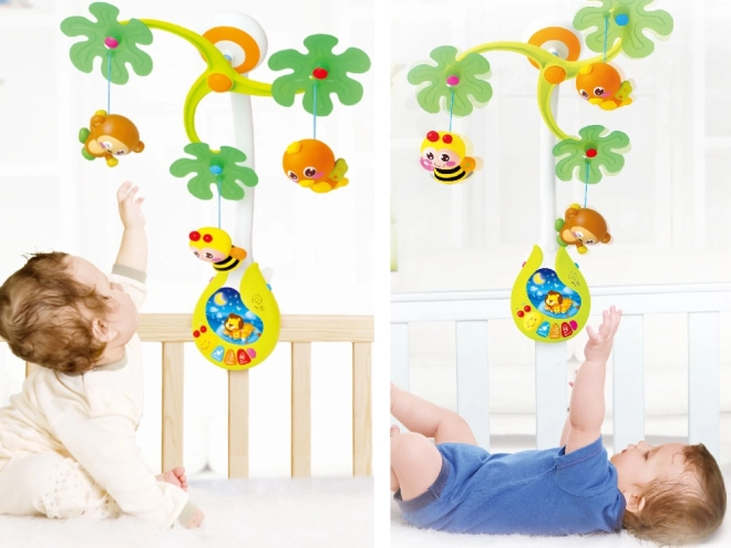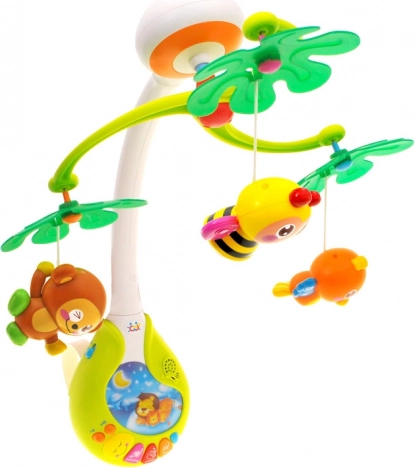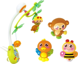 Questa allegra giostrina con carillon offre stimolazione visiva, uditiva e tattile al bebè. Le figure sospese a forma di apina, scimmietta e uccellino ruotano dolcemente mentre melodie piacevoli e una lucina soffusa creano un’atmosfera rilassante per addormentarsi facilmente.