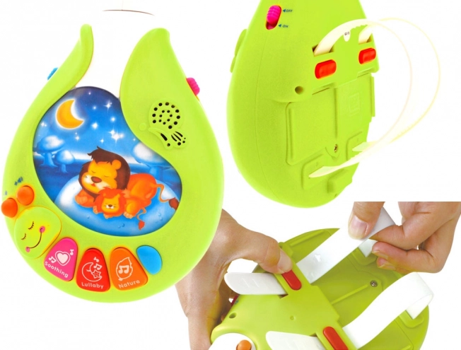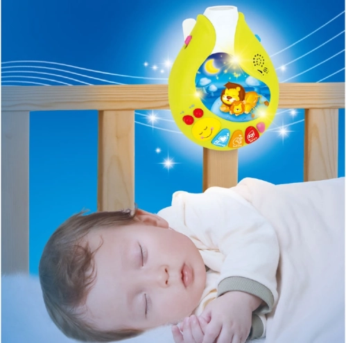 Il modulo musicale offre 3 pulsanti dedicati: Musica rilassante, Ninnananne e Suoni della natura (in totale 13 brani). Grazie alla regolazione del volume, al pulsante On/Off e a 3 livelli di modalità (luce senza rotazione, rotazione con melodie, rotazione con luce e melodie) è facile adattare l’ambiente alle esigenze del bambino.