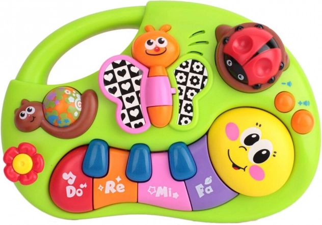 Pianoforte interattivo per bambini che, con i suoi colori vivaci, stimola la vista e incoraggia l’attività ludica. Le melodie giocose suscitano l’interesse per la musica e insegnano a distinguere diversi toni e suoni fin dalla tenera età. Gli effetti sonori e luminosi portano divertimento e gioia ai bambini.