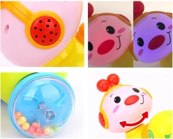 Le perline colorate nelle ruote creano effetti visivi e sonori durante la marcia. Il giocattolo risulta ancora più attraente e stimolante.