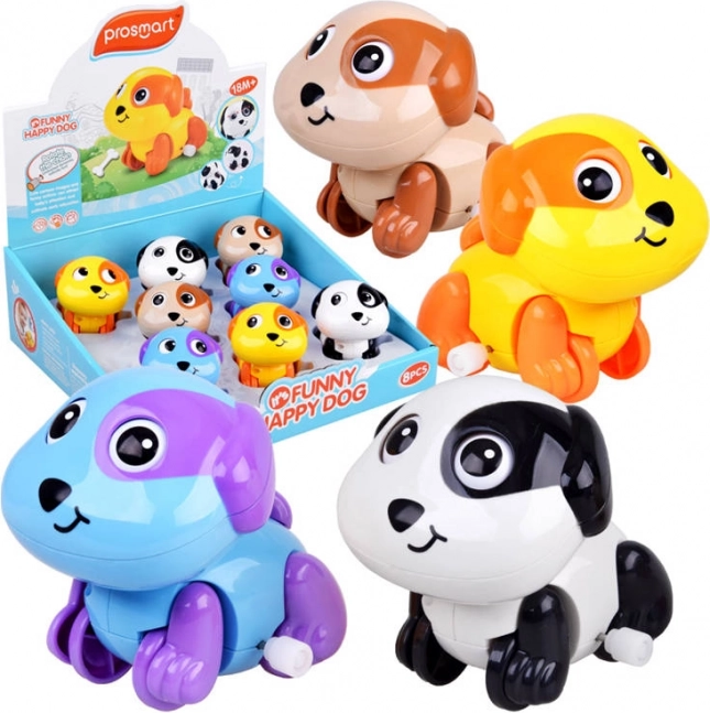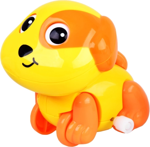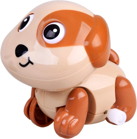 Dolcissimo cagnolino a carica che farà felici neonati e bimbi piccoli. Basta caricare la molla e il cagnolino parte da solo, durante il movimento muove gli occhi e la coda. Favorisce il movimento, il gattonare e l’inseguimento del giocattolo, è leggero e perfetto per le manine piccole.