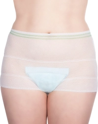 Il materiale retinato leggero e morbido assicura un libero flusso d'aria, non irrita la pelle e favorisce il comfort durante il puerperio.