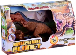 Premendo il pulsante, il T‑Rex cammina con movimenti fluidi accompagnati da passi tonanti che amplificano l’atmosfera di una caccia preistorica.