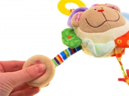 All'interno della testa si trova una sfera tintinnante che emette un suono delicato quando viene scossa, ideale per attirare l'attenzione e incoraggiare il movimento. La tenda include quattro nastri colorati con diversi elementi di gioco: