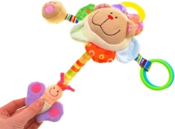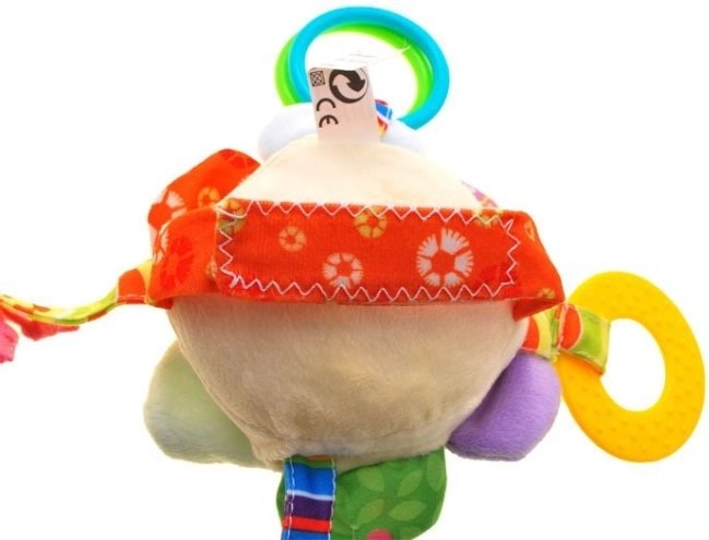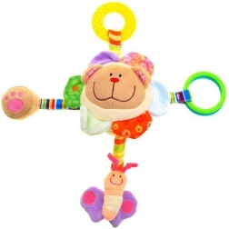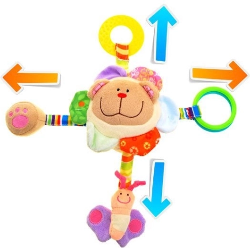 Ogni nastro è mobile – il bambino può tirarlo, torcerlo e comprimerlo, sviluppando abilità motorie e coordinazione occhio-mano. Tutti gli elementi sono completamente sicuri e realizzati con materiali amichevoli per i bambini. Sul retro del giocattolo c'è un pratico velcro che consente di fissarlo facilmente al lettino, al seggiolino auto, al passeggino o al tappetino da gioco.