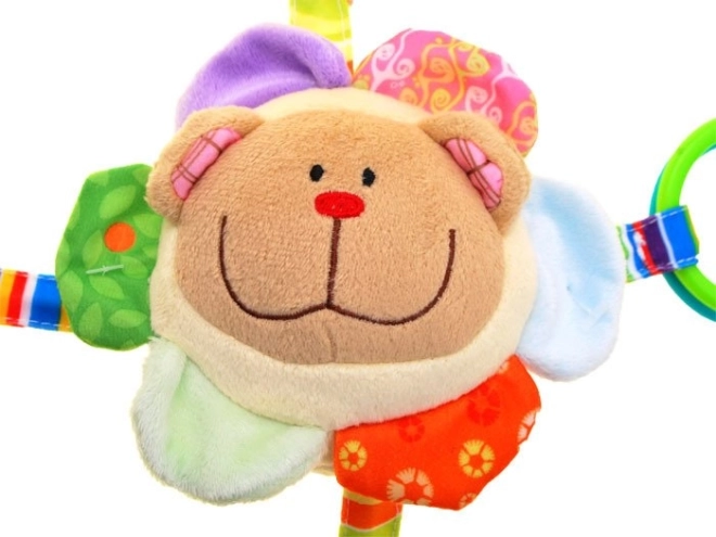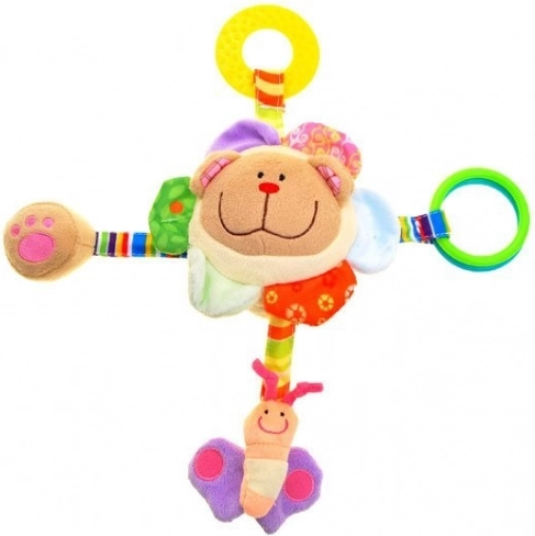 Questa tenda è progettata per neonati curiosi. Al centro si trova il viso amichevole di un orsetto circondato da petali colorati, ognuno dei quali nasconde diverse sorprese. I petali sono realizzati in vari materiali: scricchiolanti, morbidi, lisci - consentendo al bambino di scoprire e sviluppare il senso del tatto e dell'udito.