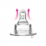 La tettarella è realizzata in strati di silicone di diversa resistenza per un adattamento dinamico della forma durante la suzione.